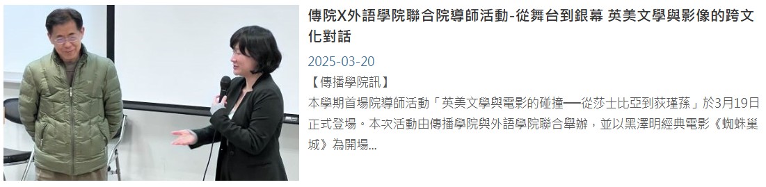 中文版 https://www.nccu.edu.tw/p/405-1000-19272,c87.php?Lang=zh-tw(by 傳院) 英文版 https://www.nccu.edu.tw/p/405-1000-19304,c87.php?Lang=en (by英文系)